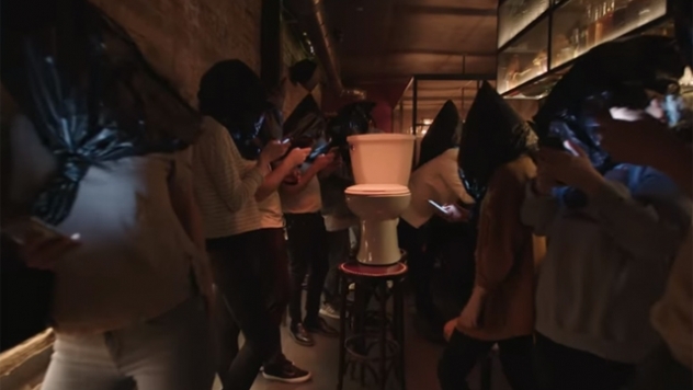 Produced by BSS and directed by the band’s own Kevin Drew, the clip tells the story of a rising musician… who happens to be a toilet bowl. There are scenes of the toilet hanging with more human characters (all of whom are wearing black plastic bags on their heads), including a studio veteran who doesn’t think the toilet has what it takes to make it big.