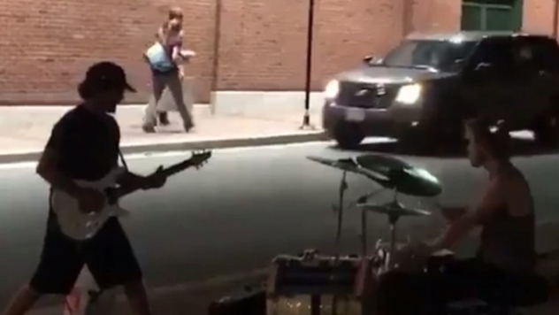Update: As Relix points out, Vedder was again seen busking outside Wrigley on Sunday. This time, he performed drums.