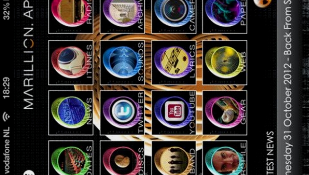 There’s a twitter client which lets you read and reply to the band’s Twitter messages, access to the band’s official YouTube channel, and links to the MOLF and the official website. An update has just been submitted to Apple which will introduce graphical improvements, more efficient news handling, push notifications, and a Marillion Radio Station with almost 1000 tracks from all eras of the band, including rare and solo material, streamed 24 hours per day. This is also airplay compatible.