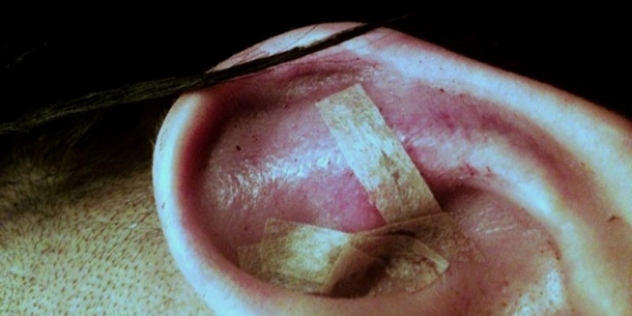 I was hit by a glass table in a dangerous fight. I was however, the victor but had to have 24 stitches to keep my ear from becoming Van Goth.”