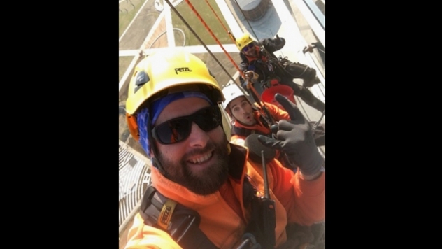 Ето тук например, ние висим и мием стъкла на 150 метра от земята и ви се наслаждаваме! Аз де – другите нямат избор, щот една колонка на jbl дъни.“