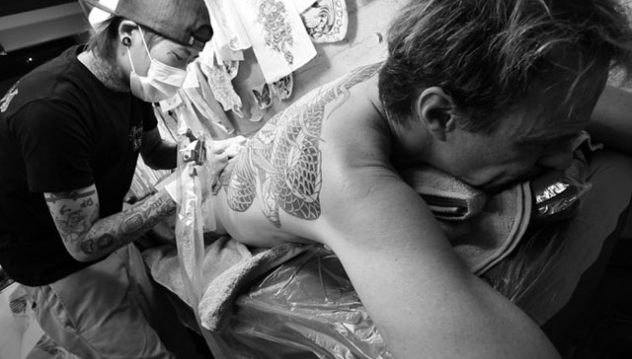 According to the VAN HALEN News Desk, singer David Lee Roth got tattooed on his recent trip to Japan.