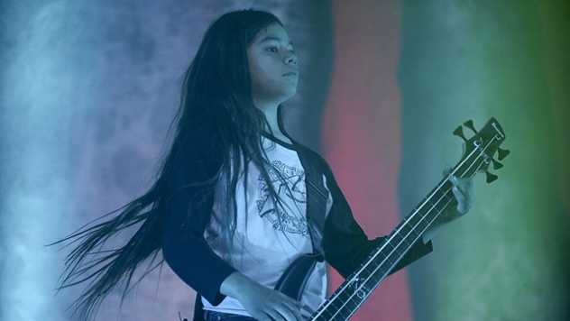 Twelve-year-old TYE TRUJILLO took his spot onstage alongside Jonathan Davis, guitarists Head and Munky and drummer Ray Luzier as he filled in for longtime bassist Fieldy during Korn’s performance at the Gran Carpa de las Americas in Bogota, Colombia on Monday night (April 17).