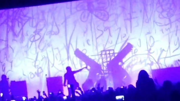 Очевидец от публиката, разказва пред BBC, че по средата на изпълнението на ‘Sweet Dreams’, МЕНСЪН понечил да се покатери по двата гигантски револвера от декора на сцената, когато те се срутили върху него и го затиснали.